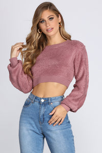 Stay cozy in the chilly temps this season with a cute pull over! This sweater features a round neckline, narrow long sleeves and a cropped hem. Sweater is composed of a soft knit fabric with eyelash and wide ribbed detailing. Pair with your fav high waist skirt and thigh high boots!