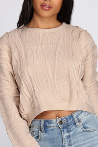 With a warm latte in hand, you'll be ready for fall in this cable knit cropped sweater! It features a round neckline, long dolman style sleeves, and a relaxed and comfortable fit. Sweater is composed of a textured cable knit fabric with moderate stretch.Style Number/Barcode: 06005-0257