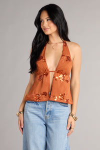 Disco Dream Sequin Rhinestone Chain Halter Top