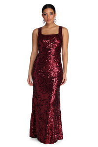 Special OccasionBring radiance to your night as you glow in our alluring Sascha dress! She features an all over rich burgundy hue, a sleeveless bodice, a square neckline with wide tank straps and padded cups. Her slim fit bodice leads to a sweeping floor length silhouette to grace each step! She is composed of a lined mesh fabric that is adorned with gleaming sequins throughout to shine in your best moments! She offers a relaxed fit with minimal stretch. Dress includes a hidden back zipper closure.