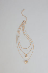 Soft, sparkly, and a little whimsical. This layered necklace mixes floral accents with rhinestone butterflies—perfect for dressing up your everyday look or adding a dreamy touch to date night.