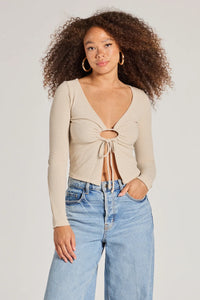 Trendy Casual Long Sleeve Tie-Front Top Trendy Casual Long Sleeve Tie-Front TopFit & Features - Ribbed knit fabric, plenty of stretch