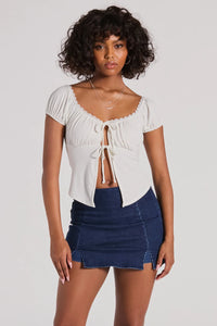 Sweet As Can Be Cap Sleeve Tie Front Crop Top Sweet As Can Be Cap Sleeve Tie Front Crop TopLife is sweet as can be when you're in this adorable crop top! Designed on stretchy rib knit fabric, this top features cap sleeves and a scoop neckline with trim, dual tie front satin ribbon bows for added charm, and a center front cutout design that flaunts your figure along the cropped hem. Complete the look in denim jeans and sneakers for casual plans! Fit & Features - Stretchy rib knit fabric