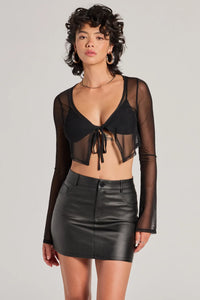 Get The Look Long Sleeve Tie-Front Mesh Top Get The Look Long Sleeve Tie-Front Mesh TopThis sheer mesh top features flared long sleeves and a tie-front closure for a trendy look. The cropped silhouette makes this top perfect for layering or going out at night. Fit & Features - Sheer mesh fabric, minimal stretch