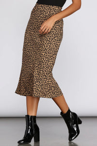 Everyone needs a little leopard print in their life! Featuring an elastic high waist line, a hidden zipper at the hip and and a trendy spotted print. This satin-like material offers a relaxed fit. The skirt flares at the hem for extra flow. Pair with your favorite sneakers or strappy heels!