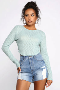Leave them thinking of you in this chic top! The top features a crew neckline, long sleeves, and a cropped rounded hem. The top is composed of a ribbed knit fabric that offers a relaxed fit with plenty of stretch. Complete your look with high waist jeans and ankle booties.