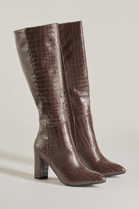 Chic Moment Faux Leather Croc-Embossed Under the Knee Boots