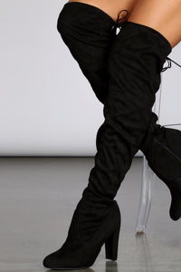 Throw on a mini skirt and some over the knee boots for the cutest fall look eva eva! These faux suede boots feature a block heel, an almond toe, an inner side zipper, and a lace up detail at the top.Style Number/Barcode: 07402-0005