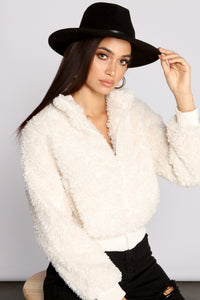 Layer up in a basic faux fur jacket this season to go with all your favorite plaid tops and high waist jeans. The jacket features a collared neckline, a zippered front, long sleeves with stretchy ribbed cuffs, and a cropped fit with a stretchy ribbed hem. The jacket is composed of a lined faux fur jacket that offers a relaxed fit with minimal stretch.