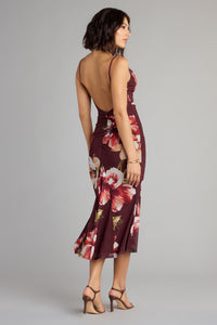 Soft, sultry, and ready for sunset dinner and drinks—this floral midi dress brings the heat with a low back and curve-hugging midi silhouette. Just add salty air and a sunset.