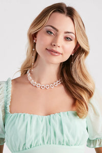 This pretty luxe pearl necklace will elevate your 'fits! Featuring small faux pearl beading in cute flower shapes, this choker necklace is perfect for the season. Includes a back adjustable chain with a lobster clasp closure. Style with dainty duster earrings.