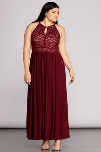 Special OccasionAn elegant, blushing beauty takes form in our mauve Marietta fit and flare dress! She features a slim lace bodice with a scalloped V neckline, adjustable narrow shoulder straps, and a high banded waist leading to a floor-length crepe skirt with a back lace godet, and a beautifully flared hem. Dress offers a form hugging fit with a moderate stretch.