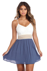 Fall in love with every chic detail of this lace skater dress sure to romance every room you walk into! With adjustable spaghetti straps and a flattering V-neckline, our dress features a lace-up mesh bodice and a playful skater silhouette. The asymmetrical ruffled trim adds a touch of flirty sophistication, making it the perfect for brides, birthday girls, or party guests! Complete the look with dainty earrings and heels.