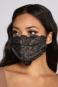 Glam up your face mask with gorgeous lace! The face mask features a lined scalloped lace material and earloops for a customized fit.