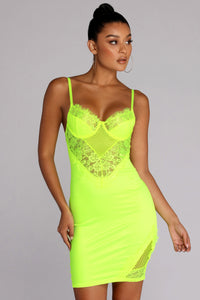 Make the after party one to remember in this sexy dress. It features a stretch satin material with lace detailing, wired cups, adjustable shoulder and back straps, and a form hugging fit.Model is 5'8" with a 32" bust, 23" waist and 36" hips. She is wearing a size small.