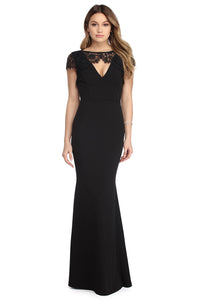 Scarlett V-Neck Lace Trim Open Back Mermaid Formal Dress