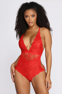 Show 'em what they've been missing out on, when you slip into this luxurious lace one piece!