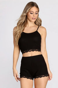 Get ready for a stylish slumber in this adorable tank and shorts PJ set! With its comfy ribbed knit fabric and dainty lace trim, this set is a must!