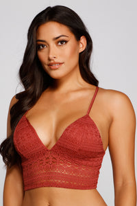 You'll be totally unforgettable in this longline lace bralette! It features a plunging front, thin straps, and lace fabrication. Wear it under your favorite tank for a must-have look.