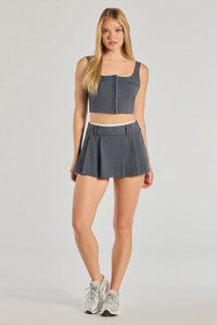 Keep It Casual Pleated Mini Skort Keep It Casual Pleated Mini SkortMeet your new fave: the keep it casual pleated mini skort. With a high-rise waist, hidden zipper, and chic pleats, it's perfect for any adventure. Rock it with confidence, girl! Shop Matching Top: Keep It Casual Square Neck Cropped Tank Top Fit & Features - Woven fabric