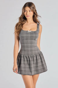 Perfect In Plaid Drop Waist A-Line Romper Perfect In Plaid Drop Waist A-Line RomperBe the trendsetter in this plaid drop waist a-line romper. With a square neckline, cute bow, and pleated overlay, this romper is your go-to for effortless style. Fit & Features - Plaid printed knit fabric