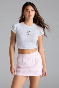 Just A Girl Mid-Rise Striped Boxer Skort Just A Girl Mid-Rise Striped Boxer SkortYou're just a girl who loves to look cute and casual, and this striped boxer skort is just the ticket! With a flattering mid-rise waist with button accents and a form-hugging fit, you'll love having this skort in the lineup. Fit & Features - Striped print, woven fabric