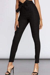 Tie It All Together Striped Pants Tie It All Together Striped PantsTie your chic and stylish look all together with these classic pants! They feature a high rise waist, a back zipper closure, a slight V detail at the waist with an adorable tie front, embossed stripe detailing all over, and form-fitting pant legs. The bottoms are composed of a stretchy knit fabric. Model is 5'9" with a 32" bust, 24.5" waist and 35" hips. She is wearing a size small. Style Number/Barcode: 06402-0077 Category Name: Cool Girl Prints Price: $6.97 $34.90 On Sale: Yes Availability: Out of Stock Product Badge:- Clearance