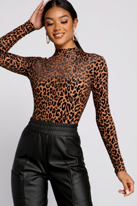 Forever Fab Leopard Print Bodysuit Forever Fab Leopard Print BodysuitKeep your 'fit forever fabulous in this trendy bodysuit! It features an overall form-hugging silhouette with a sassy flocked leopard print. Pair this bodysuit with high waist faux leather pants for an edgy night out look. Fit & Features - Mock neckline