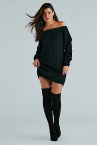 • Casual And Cozy Off-The-Shoulder Sweater Dress