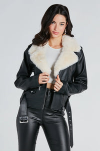 Layer on all the cozy vibes with this trendy faux sherpa shacket! It features a collared neckline, long sleeves, a button-down front, buttoned chest pockets, side pockets, and a relaxed oversized fit for that ultra-comfy feel. The soft faux sherpa fabric includes a cotton-blend lining. Pair this adorable shacket over a basic bodysuit with faux leather leggings and combat boots!