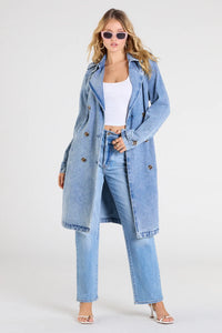 Everyone can catch you in this denim trench coat for a stylish vibe, relaxed silhouette, and tie-waist belt that cinches the look!