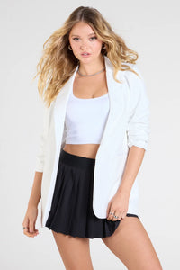 Chic and modern, this woven blazer elevates your look from casual to polished! With striped cuffs and a relaxed silhouette, you'll always feel your most confident.
