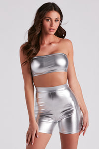 This faux leather tube top will show off your cool-girl edge at festivals and concerts! It features a strapless straight across neckline and a fitted, ultra-cropped hem. Complete the look with the matching biker shorts and trendy cowboy boots.