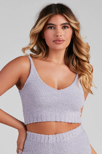 Snuggle up in this adorable and cozy chenille pajama tank! It features a sleeveless V-neckline, thin shoulder straps, a cropped, ribbed hem, and is composed of a super soft chenille fabric. Pair with the matching pajama shorts.