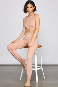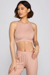 Keep it cute and cozy with a pajama tank that is oh so comfy to lounge in. The tank features a sleeveless scoop neckline and an elastic cropped hem. The tank is composed of a brushed knit fabric that offers a relaxed fit with a moderate stretch. Complete look with the matching shorts and slides.