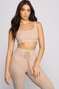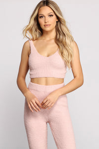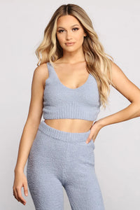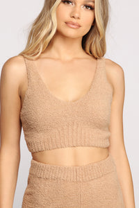 Get major cozy vibes in this adorable cropped tank! It features a flattering scoop neckline, a majorly cropped hem and a textured knit fabric. Complete your loungewear look with chic slides for the ultimate stay at home 'fit.