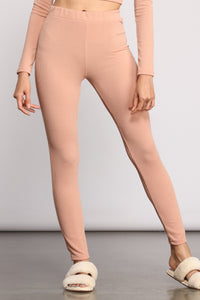 Keep it cozy in a trendy high waist leggings for your next day in lounging this season. The leggings feature a high rise waist, a skinny leg fit, and composed of a ribbed knit fabric. Complete your look with the matching crop top.