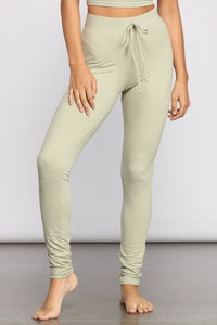 Keep it chill and cozy in leggings that are perfect for lounging at home in. The pajama leggings feature a high rise waist with a drawstring to provide a customized fit and a straight tapered leg. Complete your lounge outfit with the matching pajama tank top and cozy slides.