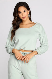 Get all those comfy cozy vibes in this adorable pullover! Pair with the matching joggers for the perf set.