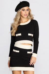 Stay ever so chic in this posh mini skirt! Complete your stylishly sophiscated look with the matching sweater!