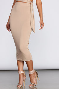 Add this staple to your wardrobe to create your favorite looks! It features an elastic high rise waist and a curve hugging midi length silhouette to showcase an hour glass illusion. Skirt is composed of a double layered smooth knit fabric that offers a moderate stretch.Style Number/Barcode: 06501-0090