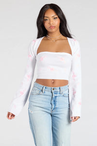 Easily charm all who see you in this long sleeve floral embroidered bolero, perfect for pairing with the matching top.