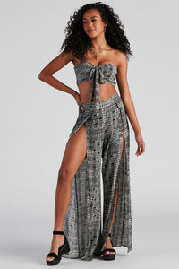 Prepare to receive all the compliments when you're in these printed palazzo pants on vacay or a weekend away! Featuring a high-rise ruffled elasticized waist and a flowy wide-leg silhouette, these pants are perfect for any occasion. The beautiful watercolor print on the lightweight linen-blend fabric adds a touch of art. Complete the look with the matching bustier top.