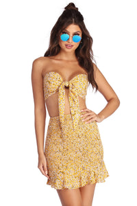 Flaunt your sweet sense of style in this charming top! It features a sweetheart bust with a tie front accent, a smocked back and an all over floral print. Top is composed of a lightweight woven fabric that offers a relaxed fit with slight stretch. Be sure to pick up the matching skirt.Model is 5'7" with 32" bust, 24" waist and 34.5" hips. She is wearing a size small.