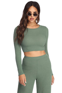 Set up in your look in cozy basics that speak for themselves! This ribbed sage hued crop top features a round neckline, fitted long sleeves and a cropped hem. Top is composed of a smooth to the touch ribbed knit fabric that offers a relaxed fit with plenty of stretch. Be sure to pick up the matching pants to complete your look!Model is 5'9" with a 34" bust, 24" waist and 34.5" hips. She is wearing a size small