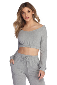 Give off major cozy 'n chill vibes with this casual yet so cute crop top! It features long cuffed sleeves, a wide V neckline, a scoop back, and a cropped, elastic banded hem. The gray top is composed of a soft knit fabric that offers plenty of stretch. Complete your look with the matching joggers!