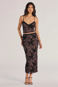 • Romantic Aura Flocked Floral Mesh Maxi Skirt