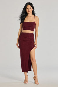 A bold long sleeve crop top that'll be a staple in your weekly lineup! Style it with the matching midi skirt to complete the look.