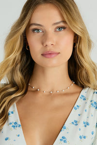Create the prettiest look by layering this pearl chain necklace with your fave 'fits! It features a single-row dainty textured chain with chic faux pearl accents. Includes a back adjustable chain with a lobster clasp closure. Style with rhinestone stud earrings.