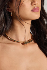 Chic and sleek, this metal choker necklace will be your new fave accessory. It features a trendy overlapping open and close design that will elevate your basic 'fits. Style with hoop earrings.